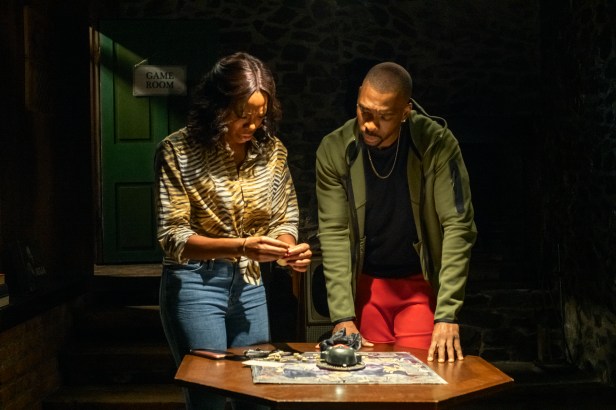 Cue the booze and ball-busting but ignore the scary surroundings and the uninvited guest (Jermaine Fowler). What could go wrong? Everything. And the shit hits the fan right away, as the house reveals itself to be a total hellhole. Problems start with a power failure and soon enough a masked madman with a crossbow appears. In between all the Molly, Adderall, and spiked fruit punch, the group discovers the titular board game in a locked game room. A closed-circuit TV shows their friend, Morgan (Yvonne Orji), gagged and tied to a chair. To save her they must play the game, which evaluates “Blackness,” based on trivia about Black culture and history. Answer them correctly within two minutes or die trying. The gang struggles to recall the second verse of the Black National Anthem and which five Black actors were on the ‘90s sitcom “Friends.” The dialogue is fast and furious and laced with social commentary, endearing and biting.